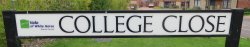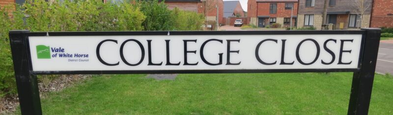 The name reflects the connection with Radley College. Some of the properties are occupied by College staff. The rest are privately owned, and thus the road sign is a standard VWHDC one with its logo.